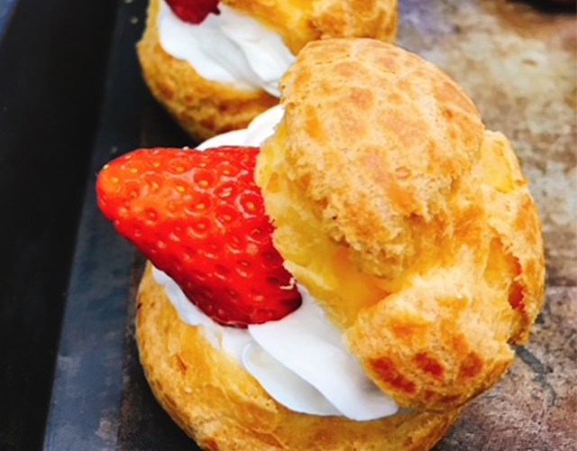 葛を使用したカスタードに、濃厚な生クリームと自家製の無添加いちごジャムを合わせました。仕上げに大粒いちごをのせました。