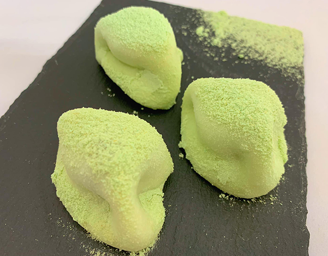 北海道産の小豆を使用した粒餡を柔らかい羽二重餅で包み、風味豊かなうぐいすきな粉をまぶしました。
