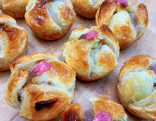 バター香るサクサクのパイ生地で桜餅を包みました。バターの香りと桜の香り、塩気が絶妙です。